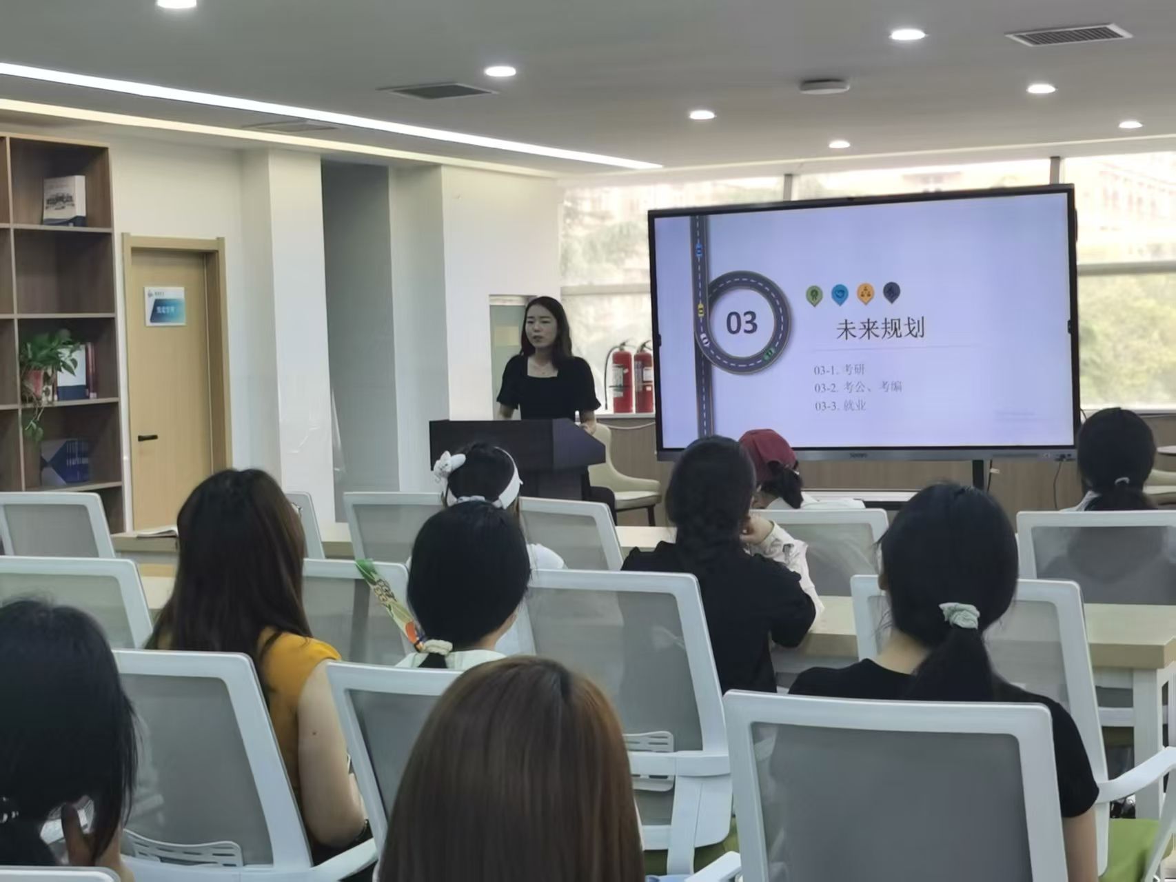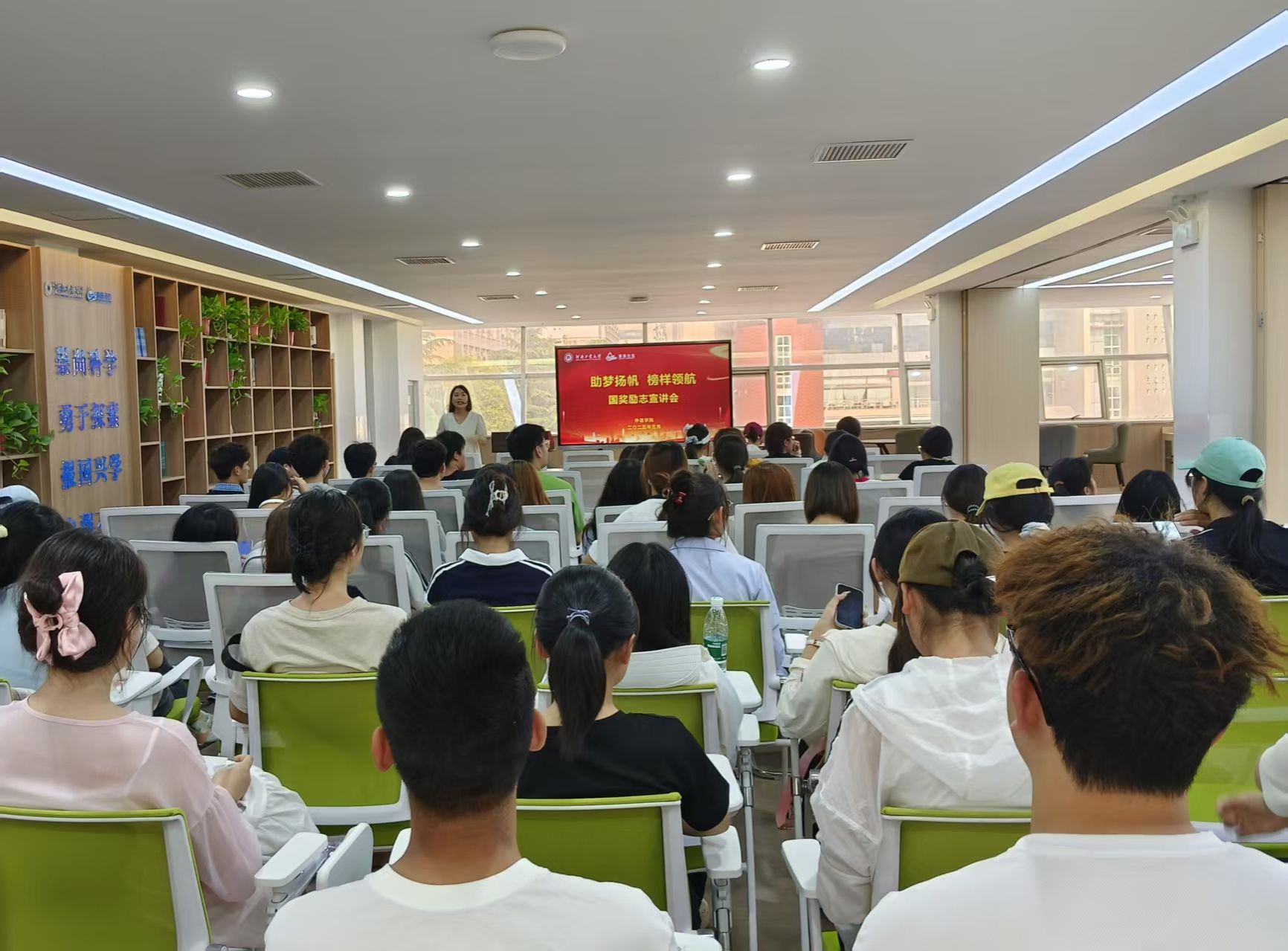 会上,2024年硕士国家奖学金获得者任沪梅分享了自己从工作到考研、从读研再到就业过程中的思想转变和经验做法,讲述自己研究生在读期间连续三年保持4.21超强绩点、斩获5项省级学术奖项的奋斗历程。2024年本科生国家奖学金获得者林馨香分享了她在专业课学习、英语专四备考、学科竞赛中的方法与复盘技巧,并鼓励学弟学妹们早做规划,从容奔赴理想未来。任沪梅和林馨香以实际行动展示了新时代青年学生的精神风貌,她们的分享让同学们深刻认识到,卓越不是一蹴而就,而是需要持续不断地努力、学习和实践。