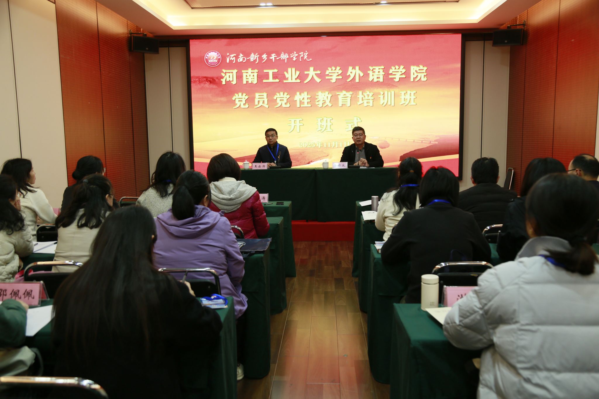 开班仪式上,学院党委书记王云涛作动员讲话。他强调,此次培训既是学院加强党的建设、夯实基层堡垒的具体实践,更是党员教师锤炼政治品格、践行教育使命的“必修课”。他对全体学员提出四点要求:一是要以政治建设为统领,筑牢理想信念;二是要以师德师风为基石,锤炼党性修养品质;三是要以担当作为为己任,践行教育报国使命;四是要以学风建设为抓手,提升教育培训实效。