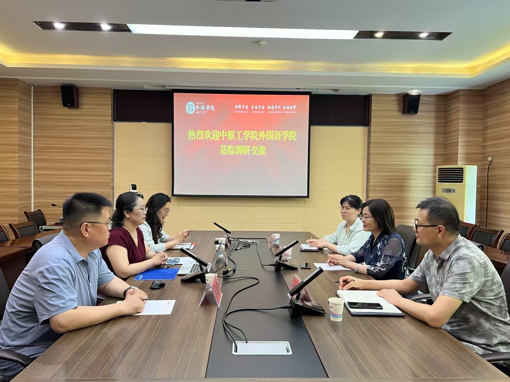5月21日,中原工学院外国语学院院长姚晓鸣等一行三人到我校外语学院调研交流。我校外语学院领导班子成员与教学工作办公室、英语系主任在5231会议室参加了座谈会。
