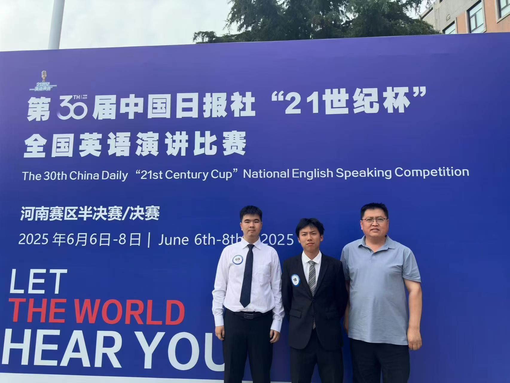 2025年6月6日至8日,第30届中国日报社“21世纪杯”全国英语演讲比赛河南省决赛在郑州商学院举行。经过激烈角逐,河南工业大学2位参赛选手脱颖而出,荣获省赛一等奖一项、二等奖一项。