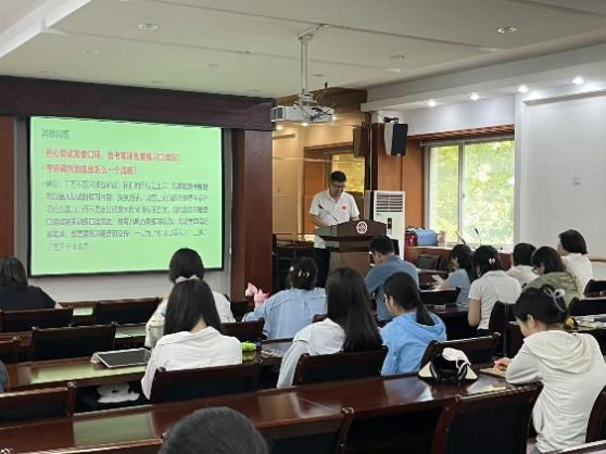 为帮助同学们更好地了解考研形势,明确备考方向,6月13日下午,翻译系在5225会议室举办2026届毕业生考研规划指导讲座。外语学院党委副书记王晓东、翻译系主任靳亚铭、学工办主任郭珊珊、翻译系考研指导团队教师,以及全体2026届翻译系毕业生参加。