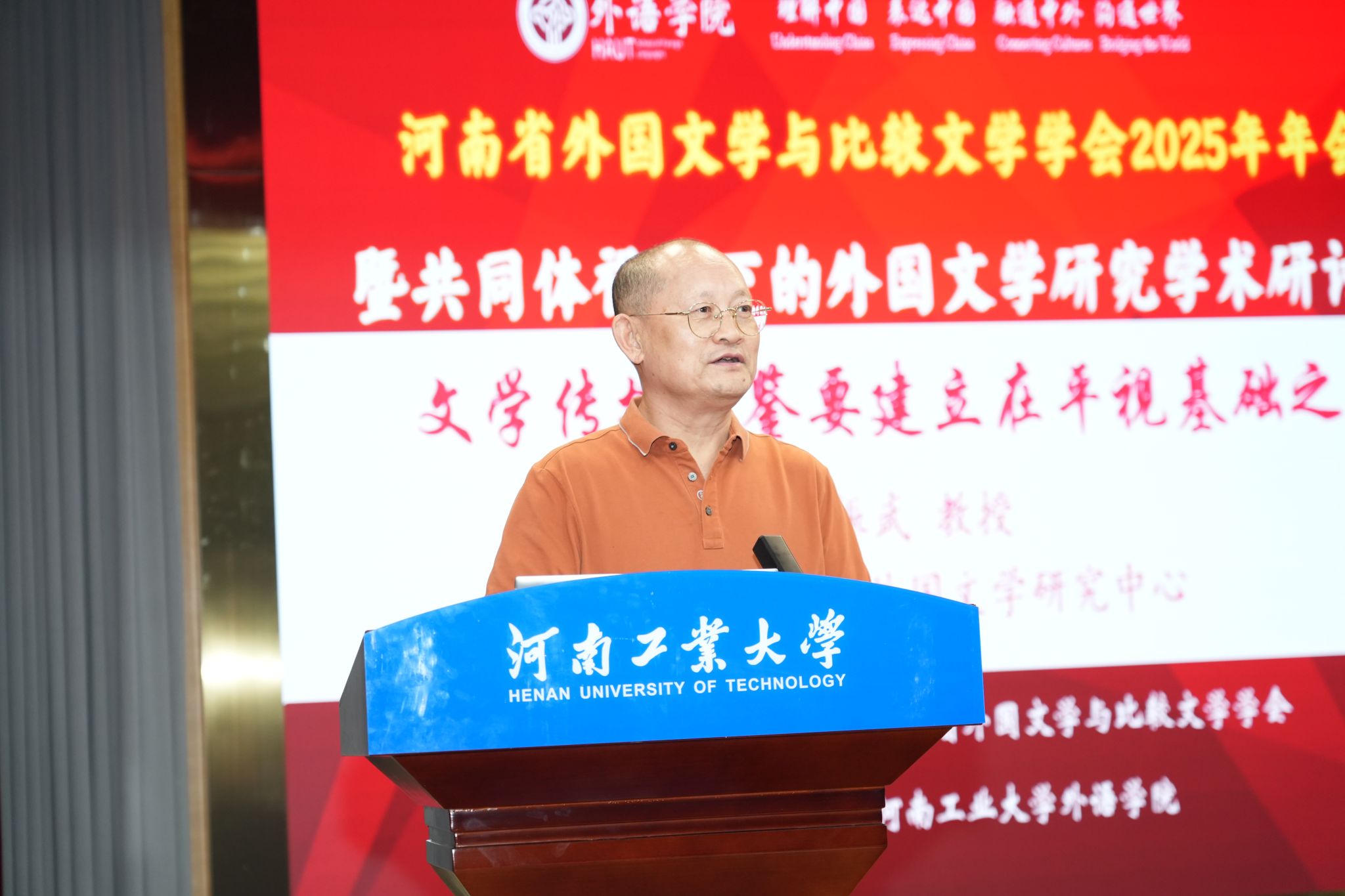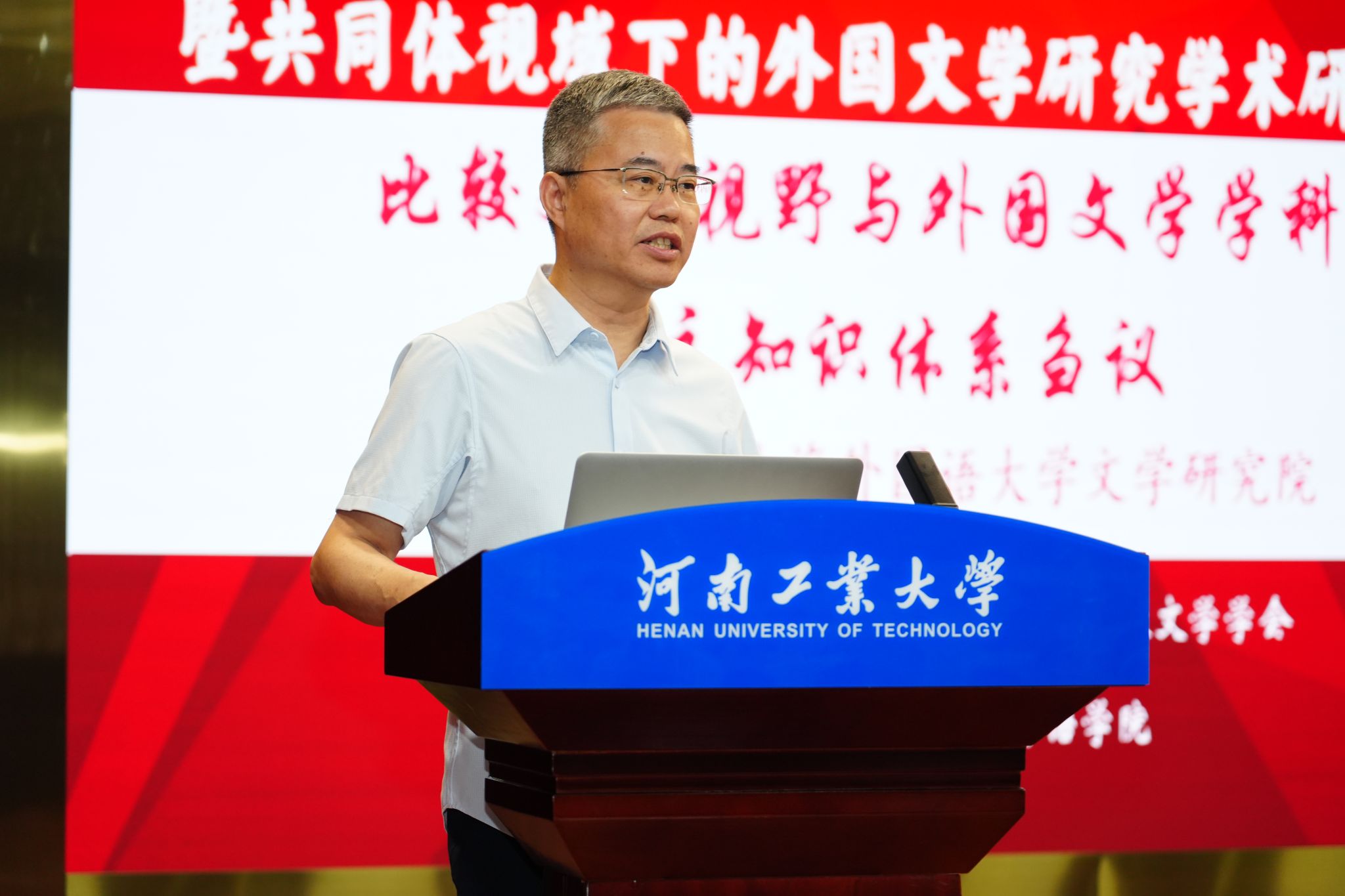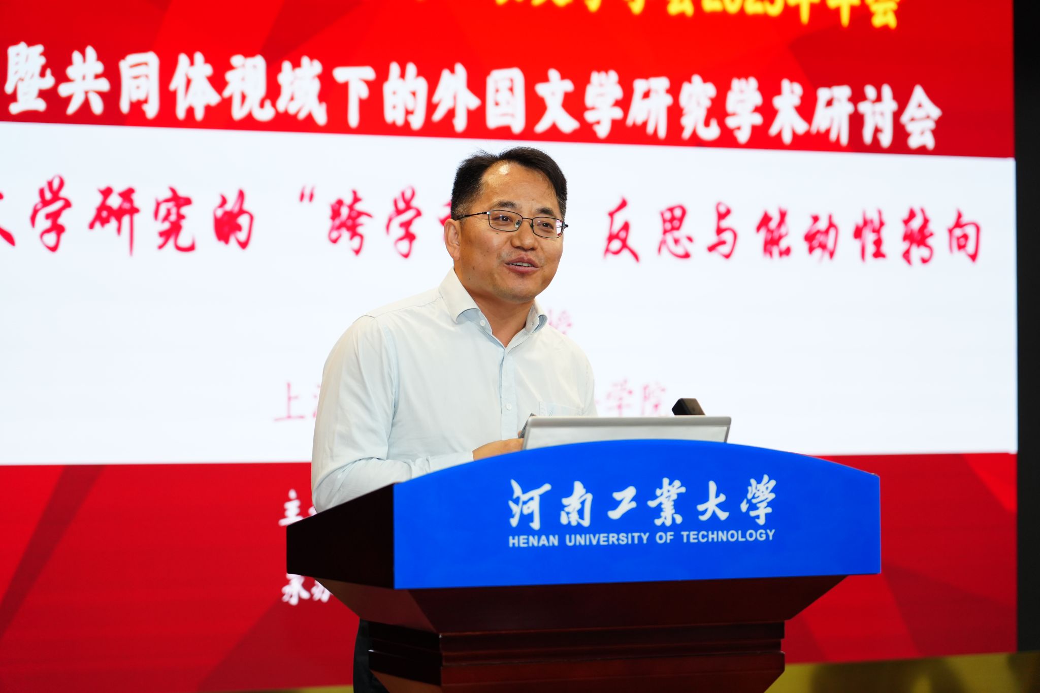 河南省外国文学与比较文学学会会长、《河南大学学报》编辑部主任、主编李伟昉教授致开幕词。他首先代表学会对年会的召开表示热烈祝贺,并向河南工业大学及会务团队致以诚挚感谢。他提出三点学术希望:一是要立足中国立场,构建中国特色外国文学研究体系;二是要加强数字人文技术融合,提升研究的时代性与创新性;三是要瞄准国际前沿,持续拓宽跨学科研究边界。