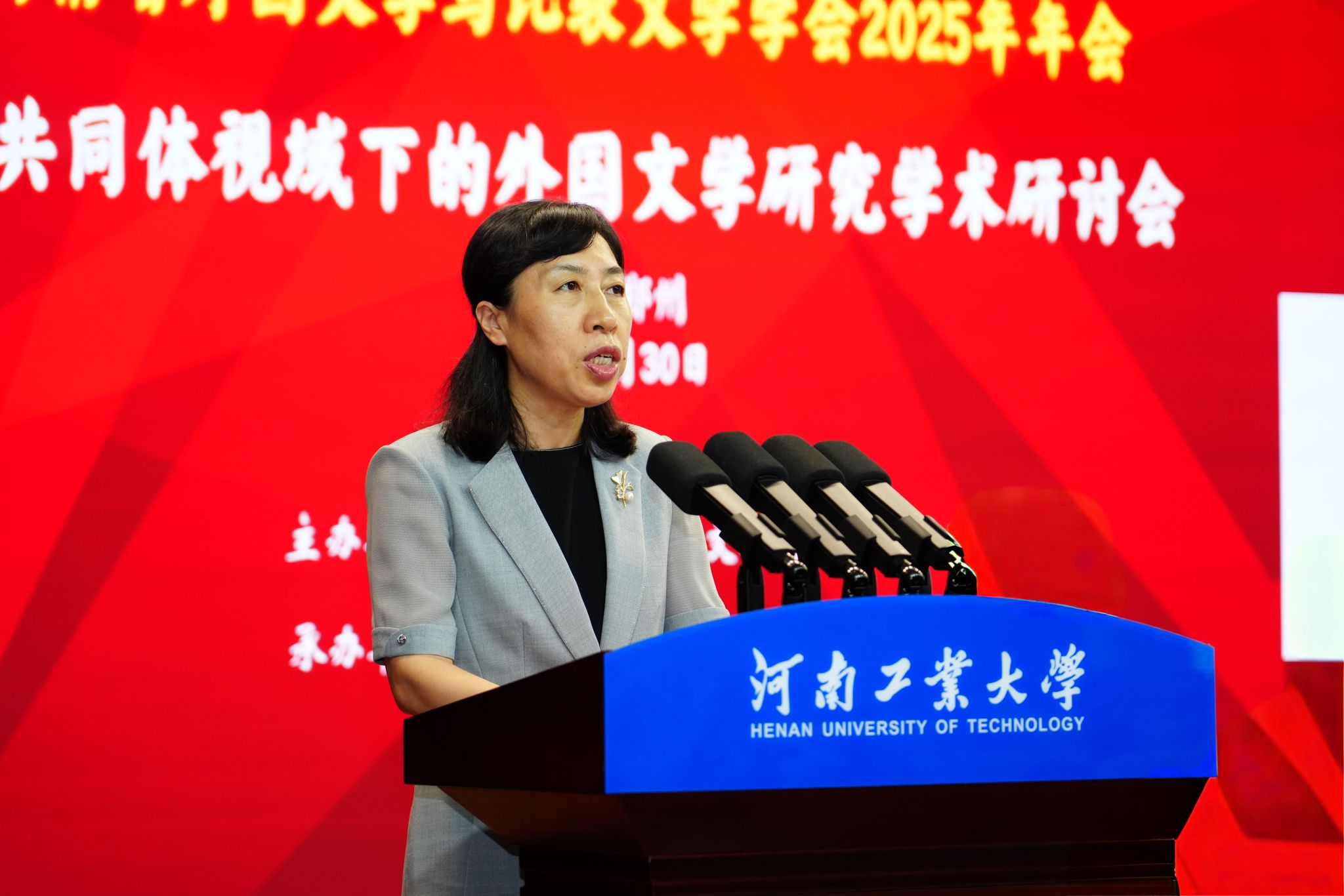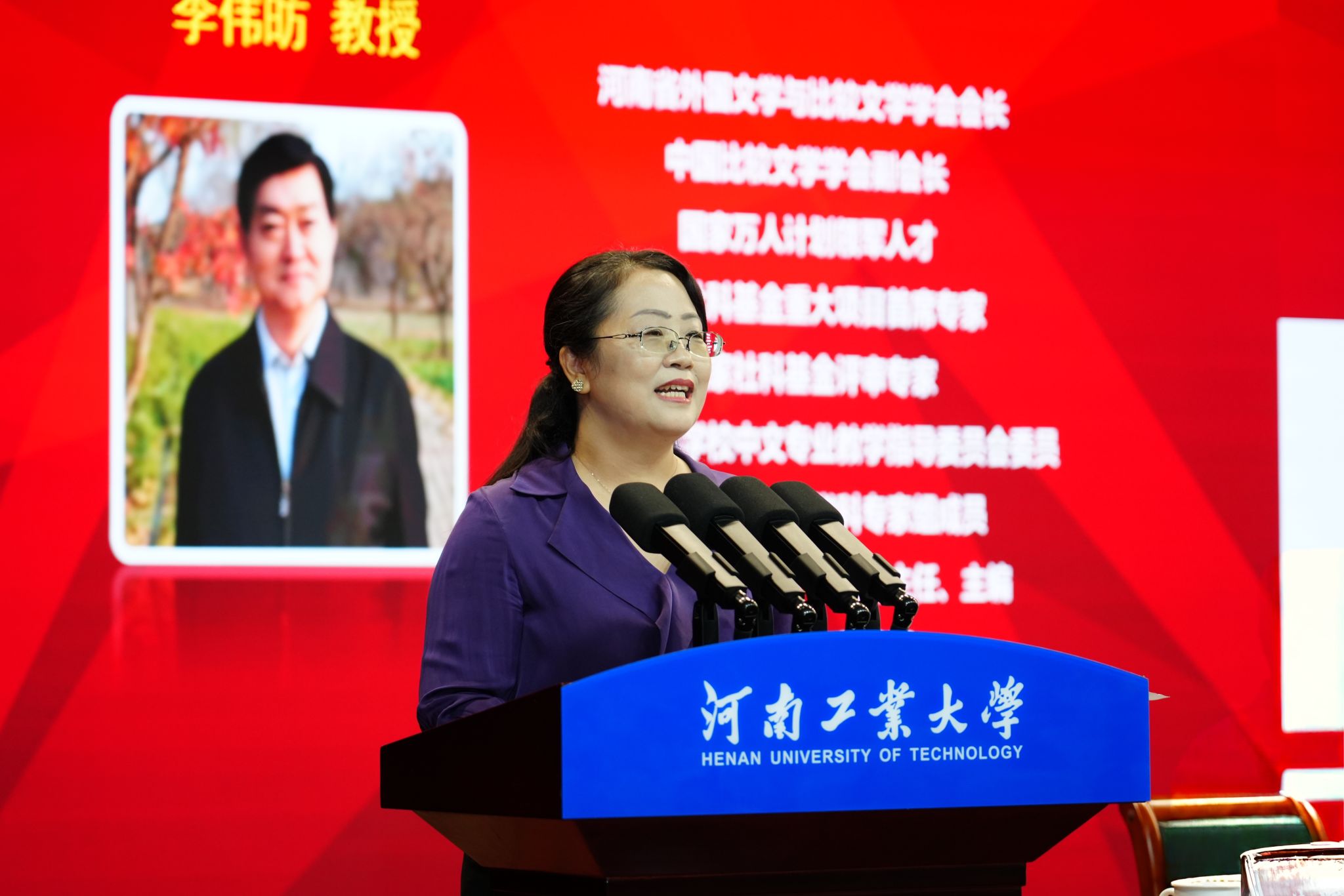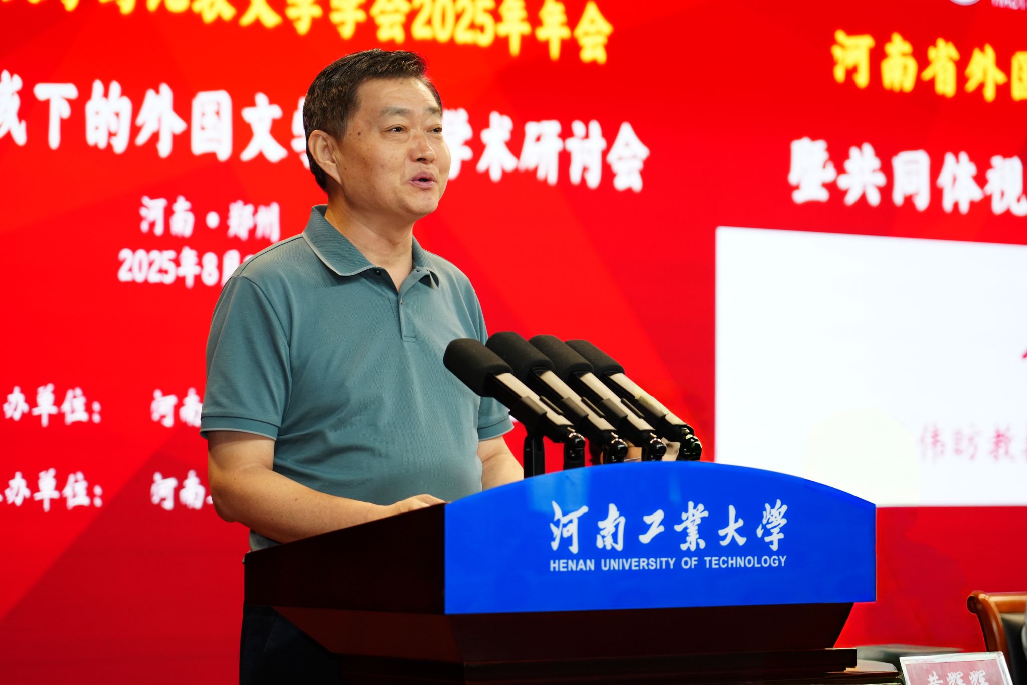 河南省外国文学与比较文学学会会长、《河南大学学报》编辑部主任、主编李伟昉教授致开幕词。他首先代表学会对年会的召开表示热烈祝贺,并向河南工业大学及会务团队致以诚挚感谢。他提出三点学术希望:一是要立足中国立场,构建中国特色外国文学研究体系;二是要加强数字人文技术融合,提升研究的时代性与创新性;三是要瞄准国际前沿,持续拓宽跨学科研究边界。