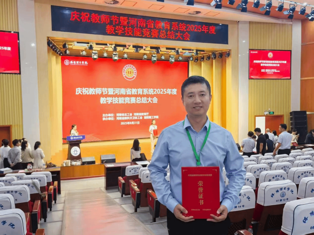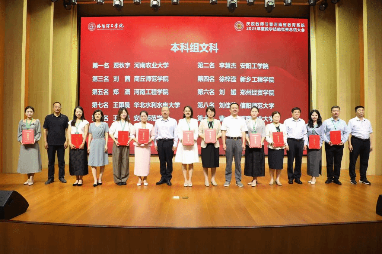 8月28-31日,由河南省总工会、河南省教育厅联合主办,河南省教科文卫体工会和洛阳理工学院共同承办的河南省2025年度教育系统教学技能竞赛本科组现场决赛在洛阳举行。我院曹阳老师凭借扎实的教学基本功和出色的现场表现,荣获一等奖(文科组全省第十)。实现我院在该项赛事的历史性突破。