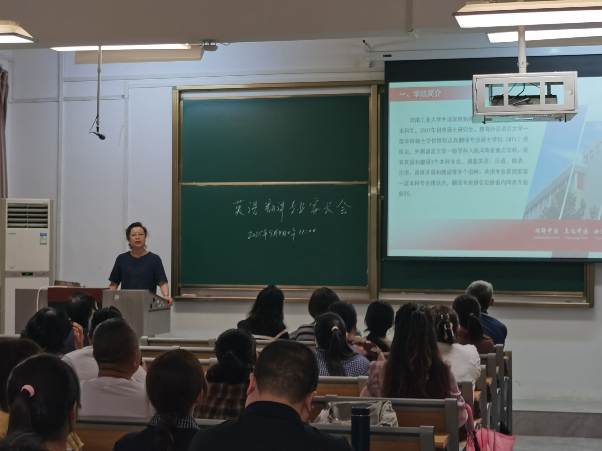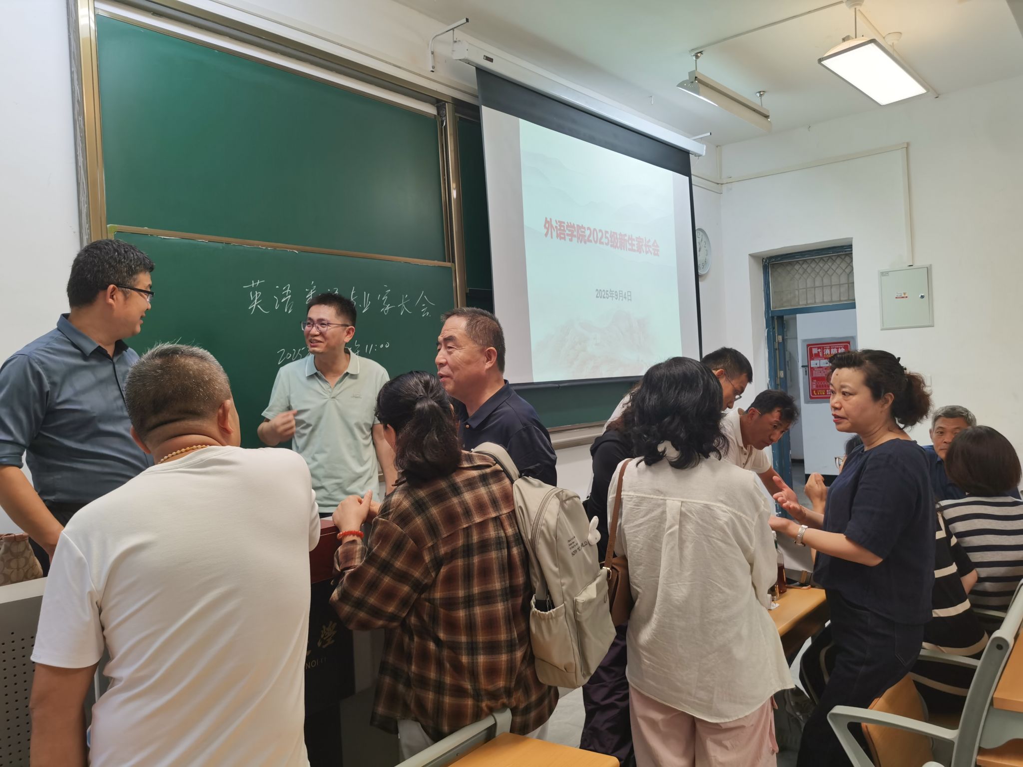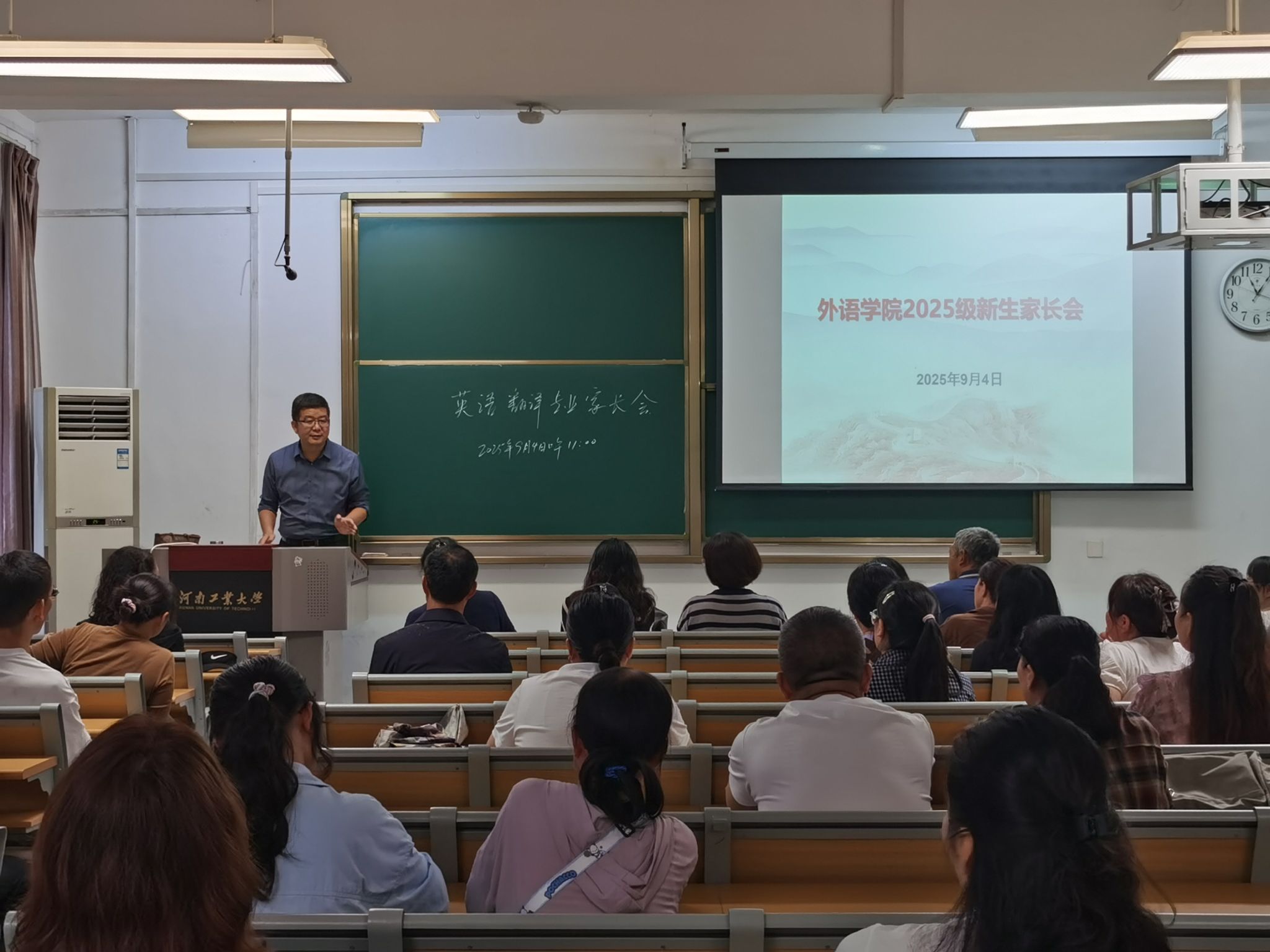 金秋送爽丹桂香,家校携手育新苗。9月4日上午,外语学院2025级新生家长会在嵩山路校区1号教学楼219教室召开,学院党委副书记王晓东、副院长葛丽萍、英语系主任康方、翻译系主任靳亚铭、学工办主任郭珊珊和新生家长参加了会议。会议由副书记王晓东主持。