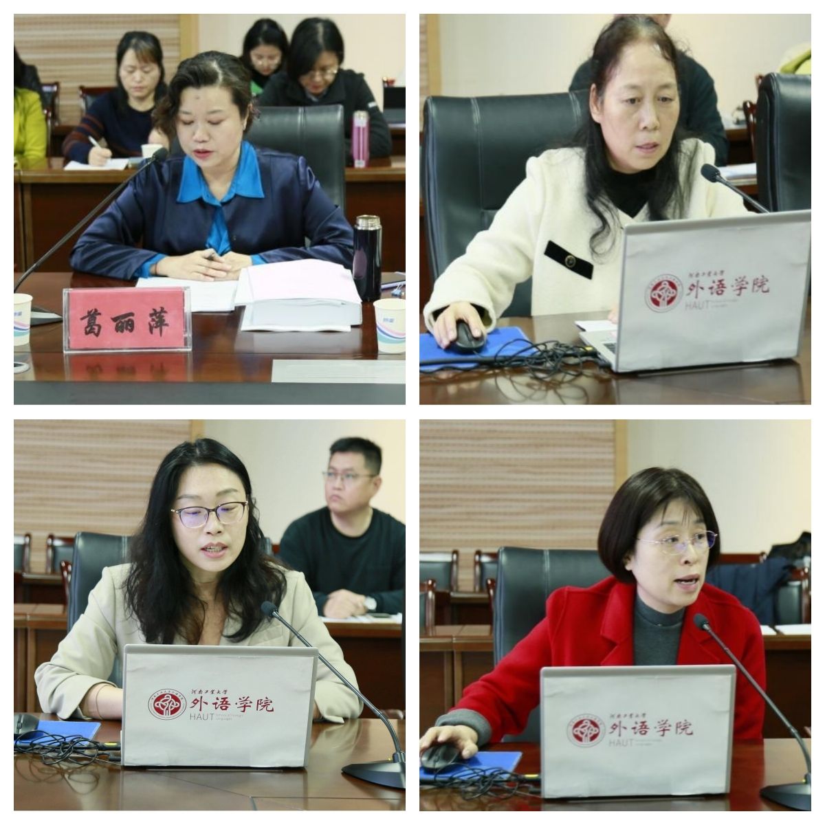 在汇报环节,外语学院副院长葛丽萍代表学院作2025版本科课程大纲修订总体情况汇报。她系统介绍了大纲修订的范围、历程、原则、主要内容与实施举措,为专家论证提供了全面详实的参考依据。随后,学院各系部负责人依次汇报专业课程大纲修订情况,围绕培养目标、课程设置、教学特色等方面进行了具体说明,展示了各系部在大纲修订中针对不同培养目标的差异化设计与特色化规划,并就修订过程中遇到的实际问题向专家请教。